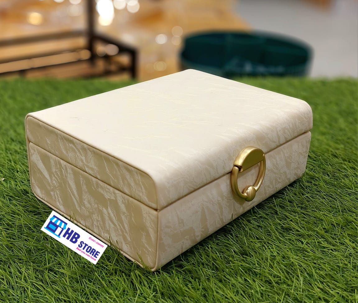 With dedicated compartments for rings, earrings, necklaces, and bracelets, every piece has its place — no tangles, no scratches, no more lost studs. Its compact, minimalist design fits effortlessly into your travel bag or vanity, while the luxe finish adds a touch of sophistication to your everyday routine.