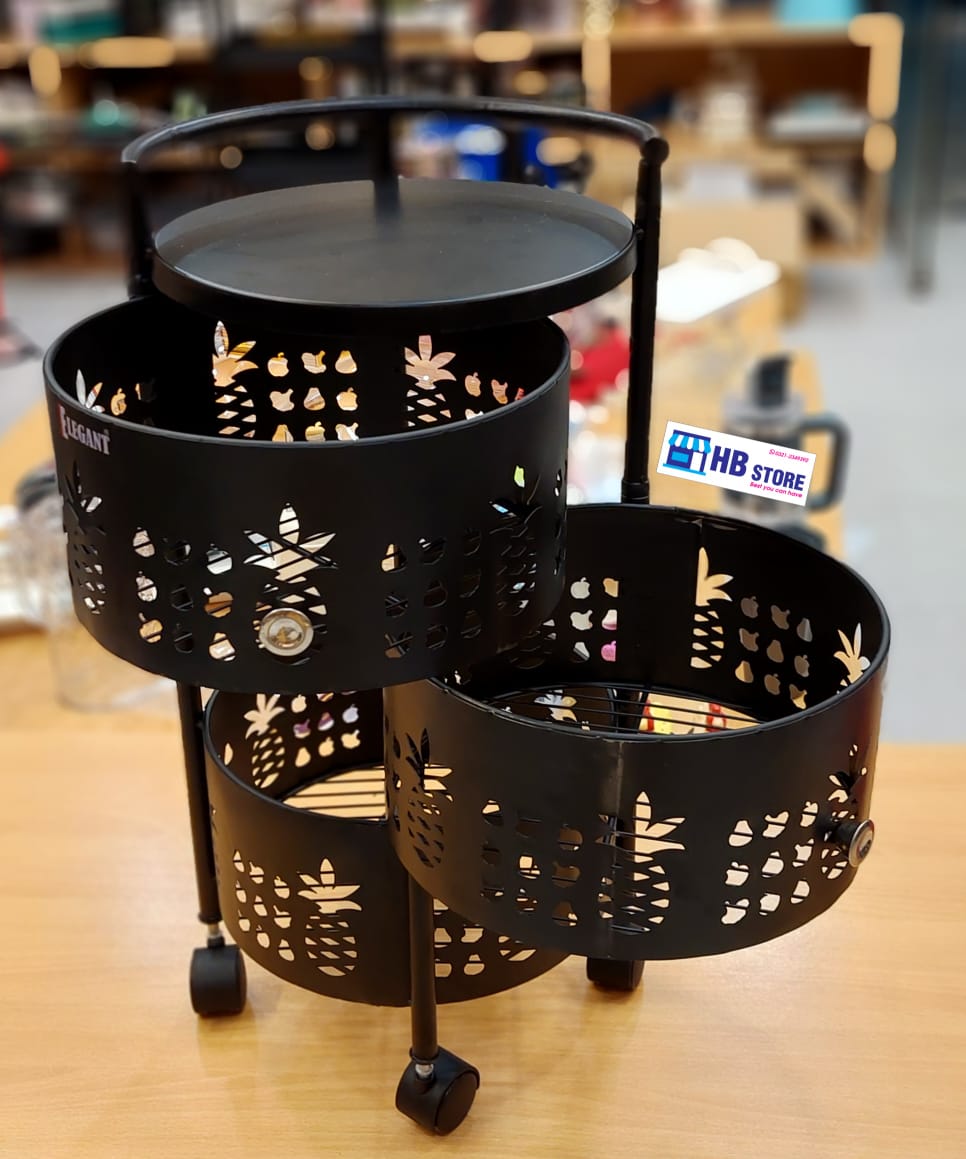 "Declutter with Style – This 3/4 Tier Rotatable Storage Rack keeps your veggies, snacks, and essentials neatly stacked and always within reach. Space-saving, stackable, and easy to move!"