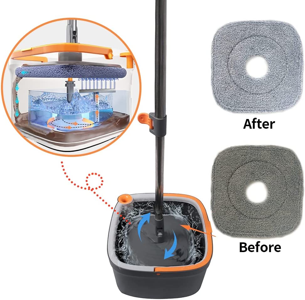 Spin Mop and Bucket Set with Self Separation Dirty and Clean Water System, Self Wringing 360° Rotating Square Mop-Head for Hardwood Tile Marble Floors
