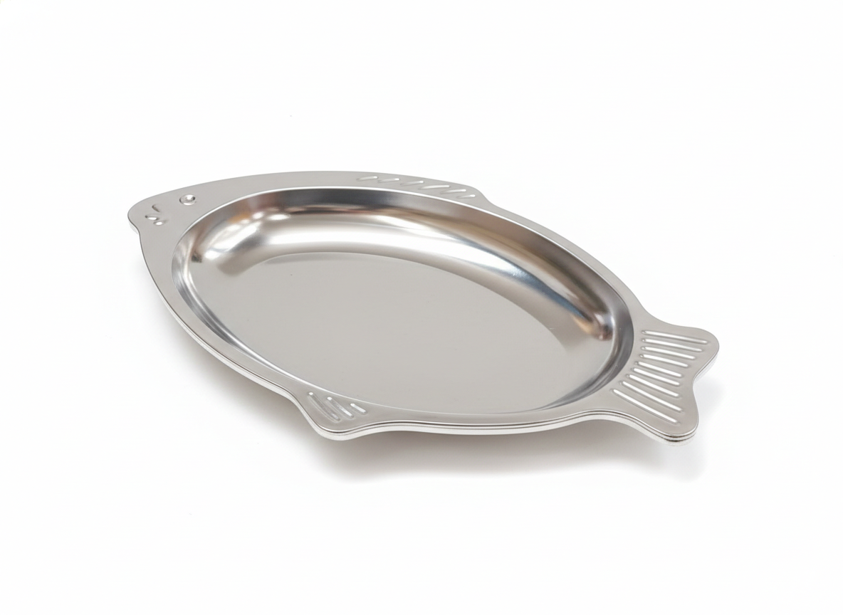 Elevate your next dinner party with this whimsical yet sophisticated fish-shaped serving platter. Crafted from high-quality, polished stainless steel, this durable tray features embossed detailing on the fins, tail, and face to bring a touch of nautical charm to your table.