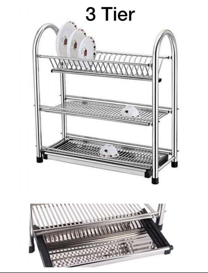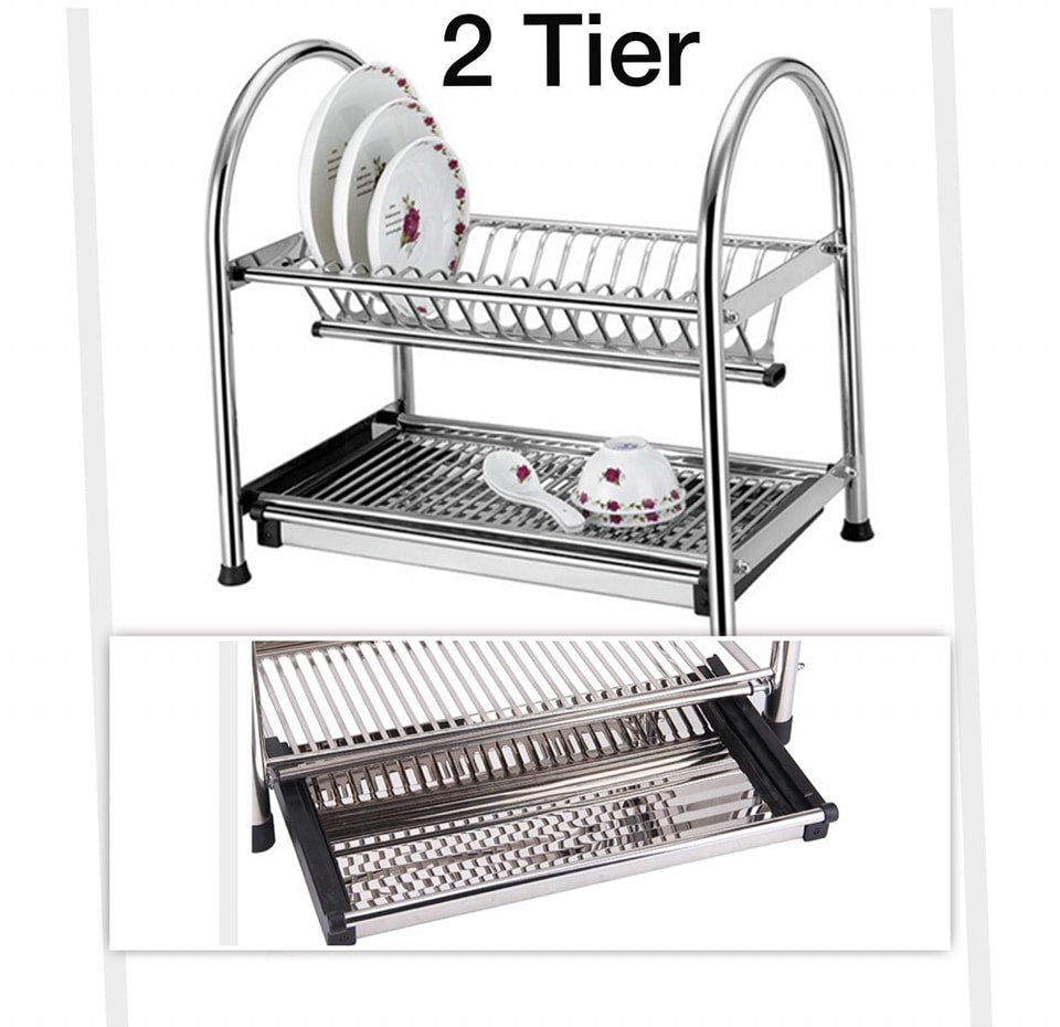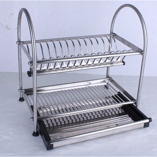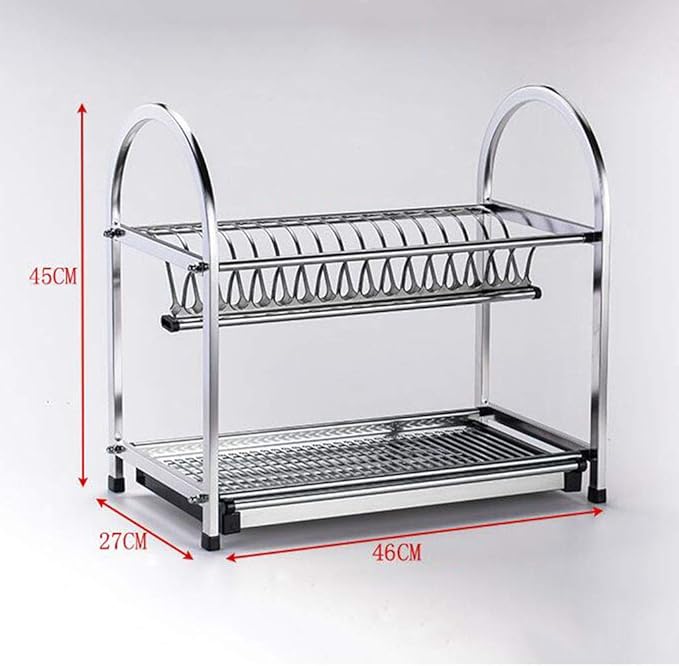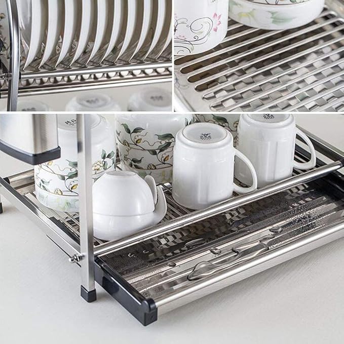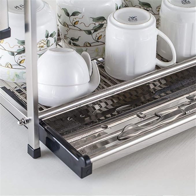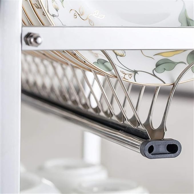 ●the Overhead Frame is Used for Placing Dishes, While the Flat Two-Layer Bottom Shelf is Used for Placing Cups and Bowls, with Two Support Bars at the Top and a Stainless Steel Tray for Collecting Water Droplets at the Bottom.★