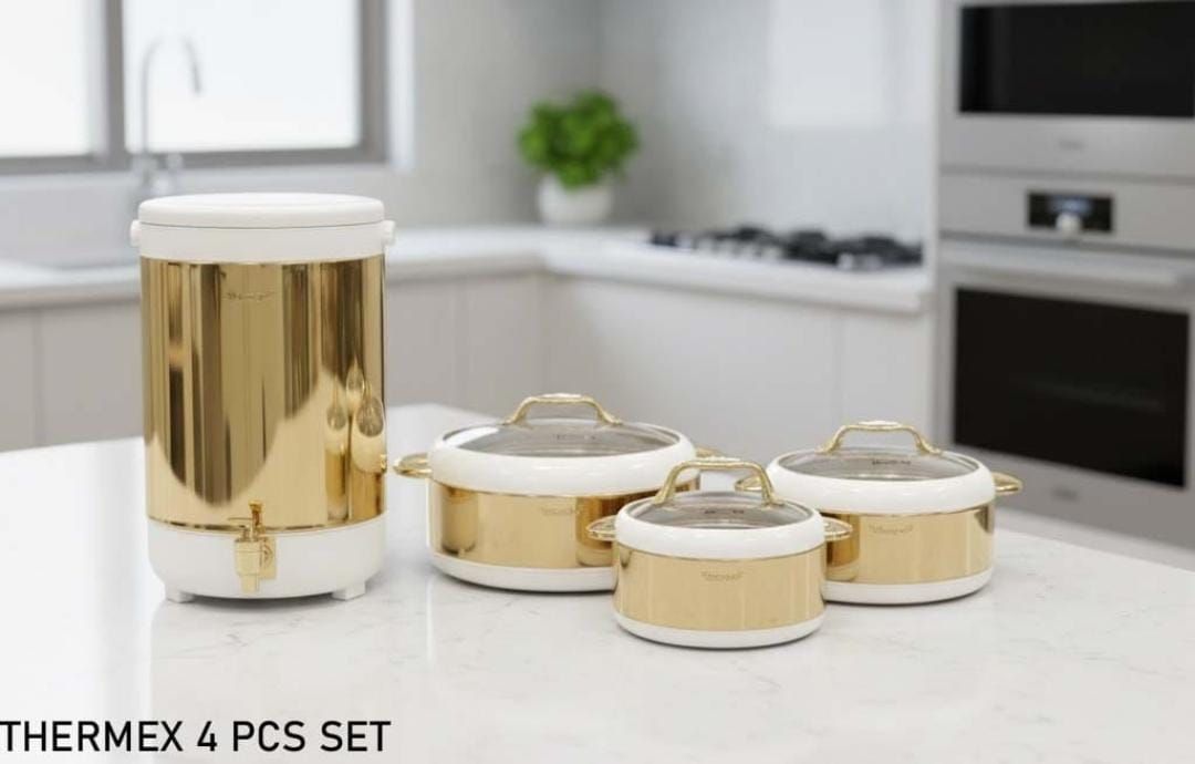 The Thermex Prime Series is a sophisticated household essential set designed to keep your food and beverages at the perfect temperature while adding a touch of class to your dining table. This 4-piece set is ideal for large family gatherings, weddings, or as a premium housewarming gift.