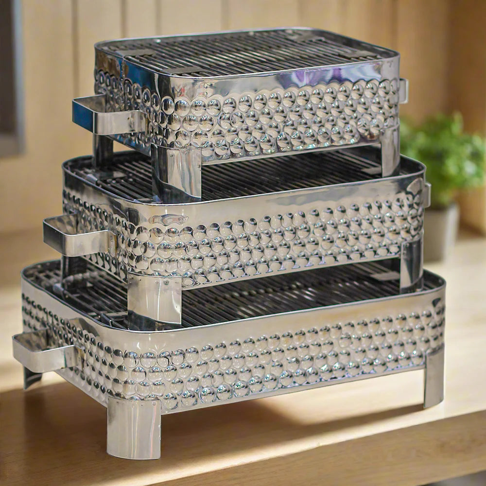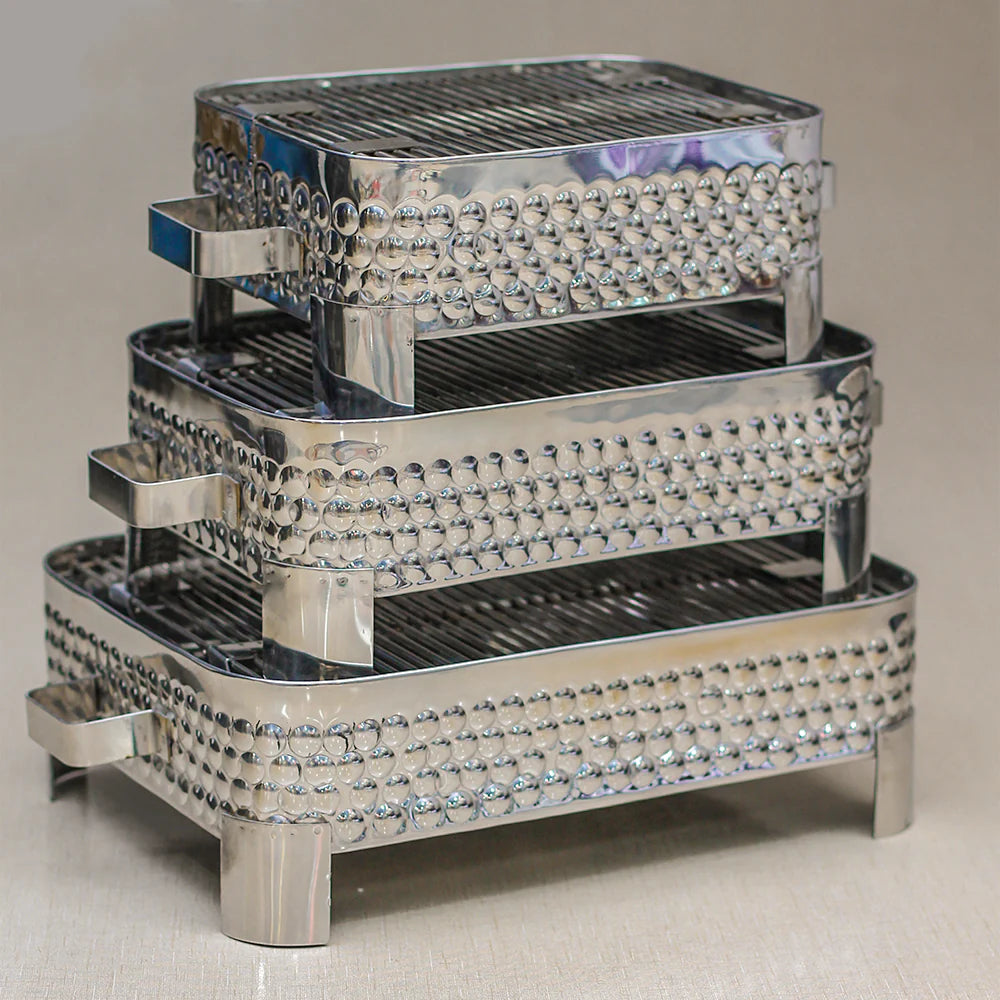Golden PVD coated BBQ serving grill is available in three different sizes.