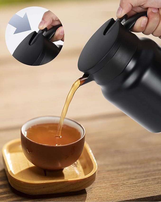 • 【Multi-Iayer Vacuum Insulation】Our coffee carafe uses a multi-layer vacuum layered insulation, the highest temperature can be maintained for up to 6 hours. Different from brewing and brewing tea, stewing tea at high temperature can better increase the pressure on the tea-flavored substances inside the tea leaves and promote their release more adequately. The tea is stewed for half an hour, and the longer the time goes on, the more fragrant the tea becomes and the richer the taste. Our ceramic coffee carafe is perfect for tea stewing.
