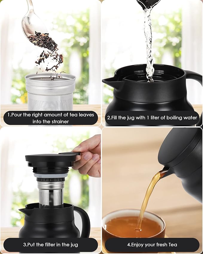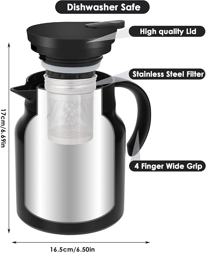 • 【Double as Tea Maker】Thanks to the removable tea filter, this carafe for hot liquids could be a coffee pot as well as a teapot. Brew tea directly into this carafe with our unique filter, and keep it hot all day whenever you want fresh tea.