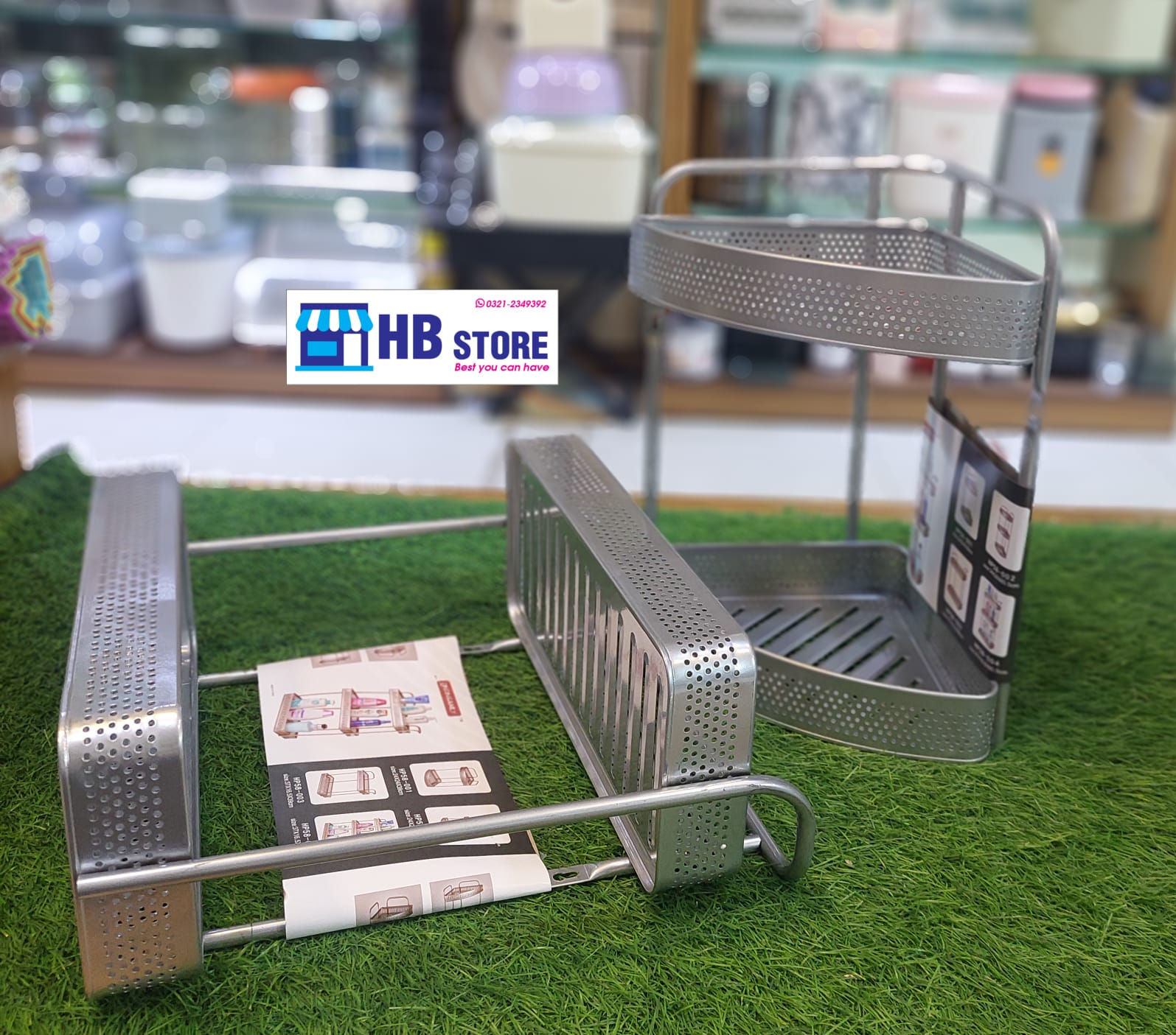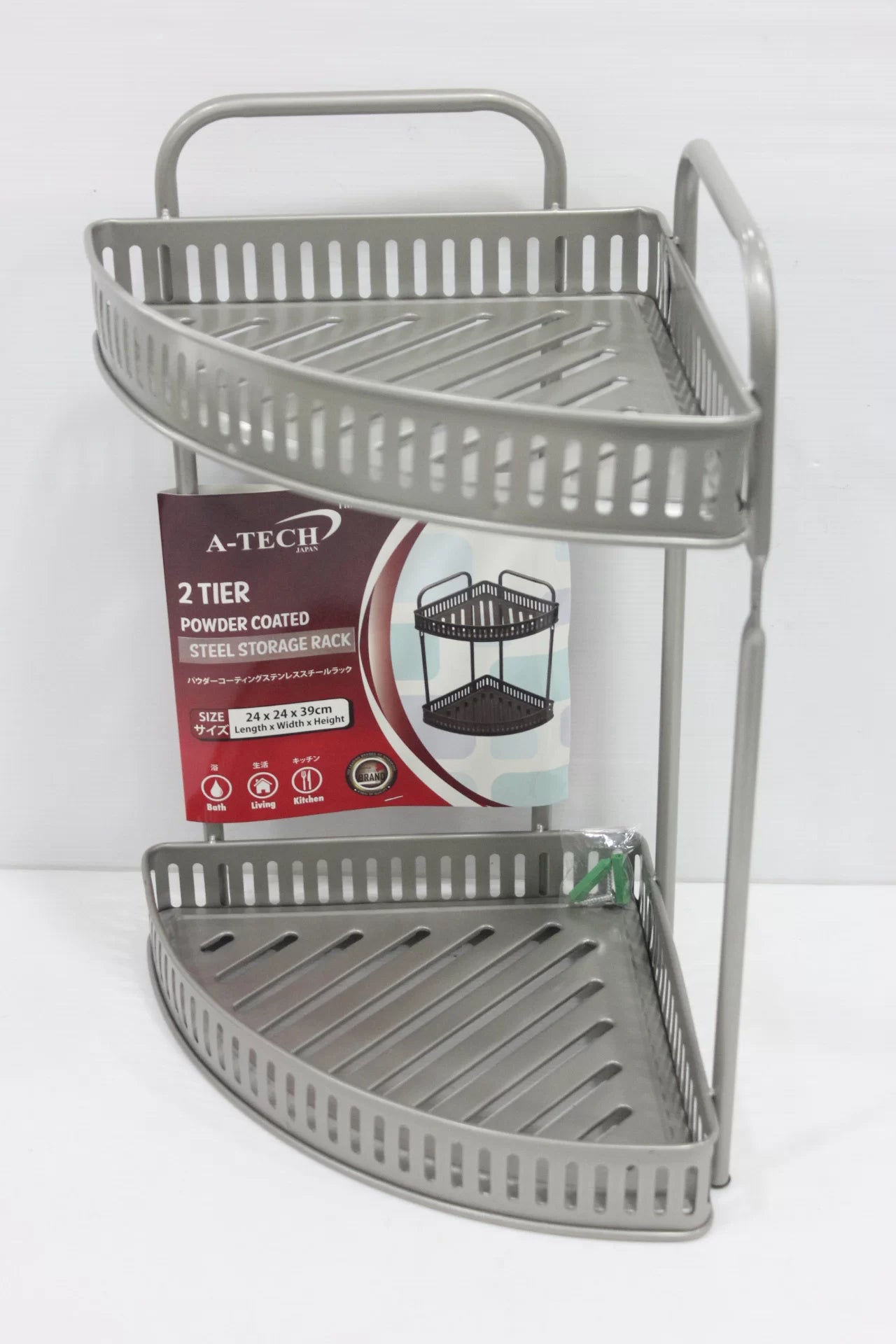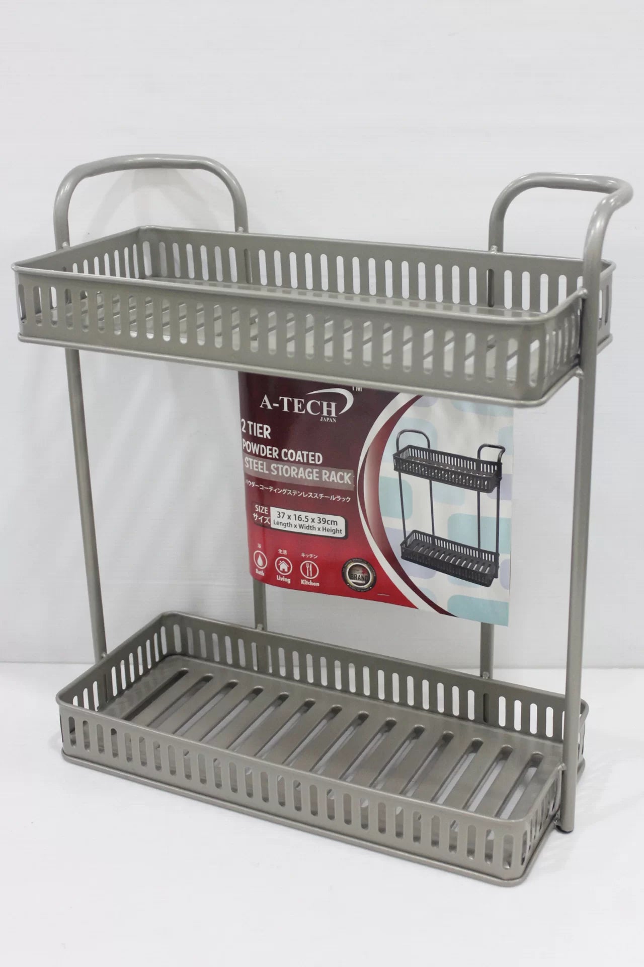 2 TIER POWDER COATED STEEL RACK (RECTANGLE) is made of high quality steel that is powder coated with rust & corrosion resistant coating. The Coating gives the rack its unique texture and colour and also at the same time providing protection. Best suited for storage in bathrooms or kitchens.