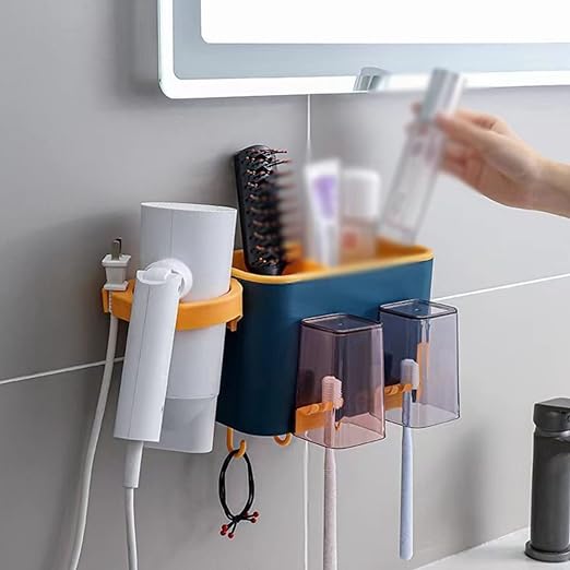 【Space-saving】You can put the dryer on it. It has a storage space, so you can easily place your toothbrush, cosmetics, razors, toothpaste, comb, and other items you use every day, making it very convenient