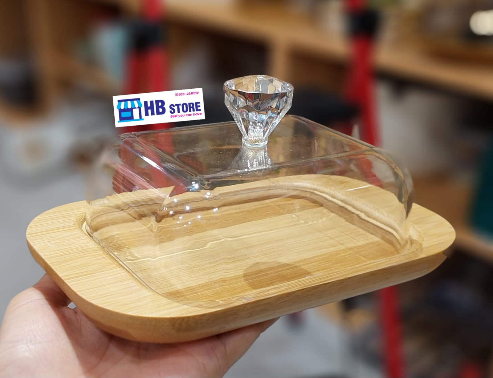 Practical design – the bamboo of the glass butter dish is particularly cleanly processed. In addition, this provides enough grip so that the butter stays in place when painting and does not slip