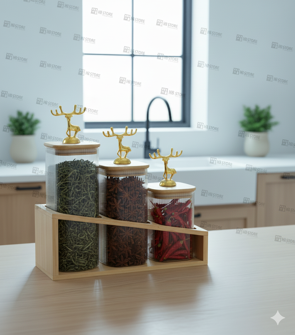 Add a touch of natural elegance to your kitchen with this 3-piece glass jar set, complete with airtight bamboo lids and a beautifully crafted wooden stand. Ideal for storing dry fruits, spices, tea, coffee, or snacks, this set blends functionality with modern design. The transparent glass jars let you easily see the contents, while the bamboo and wood combination adds a warm, earthy charm to your countertop. Perfect for an organized and stylish kitchen space.